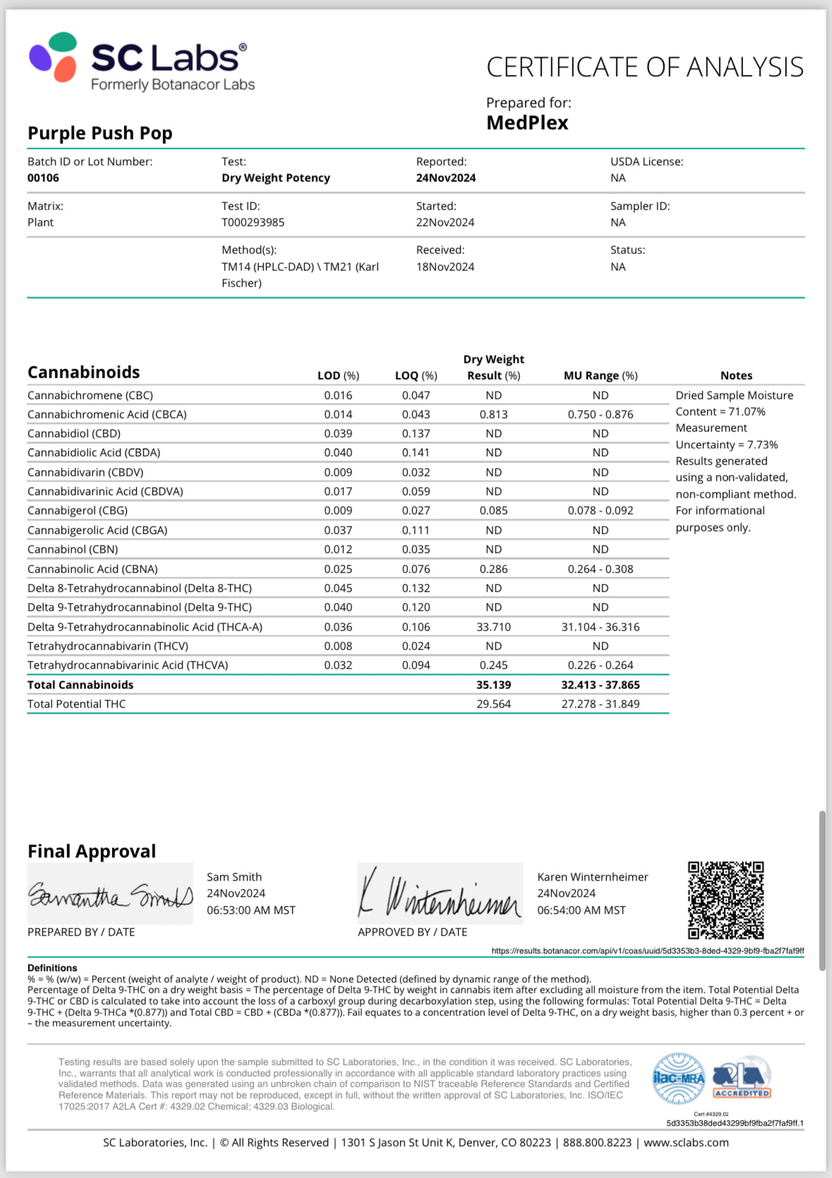 35% Purple Push Pop THCa Flower 7g INDICA AAA Indoor