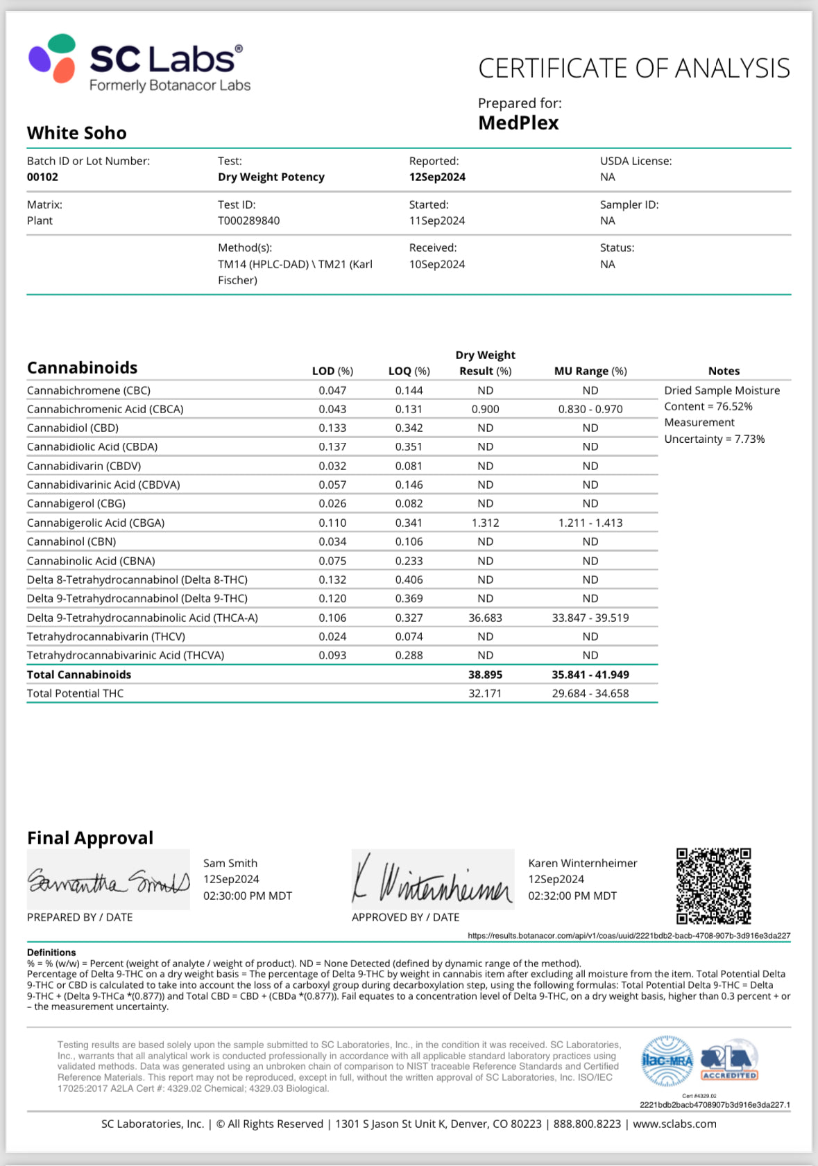36.6% White Soho THCa Flower 7g HYBRID AAA Indoor