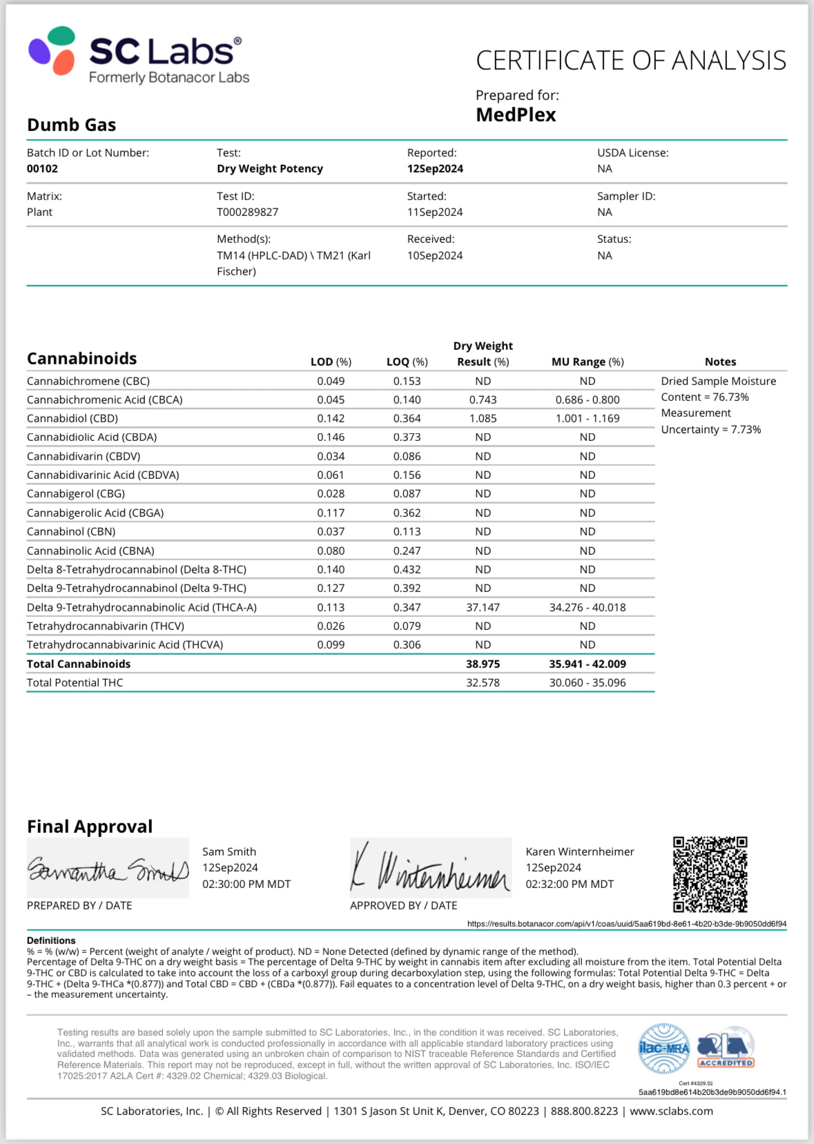 37.1% Dumb Gas THCa Flower 7g HYBRID AAA Indoor