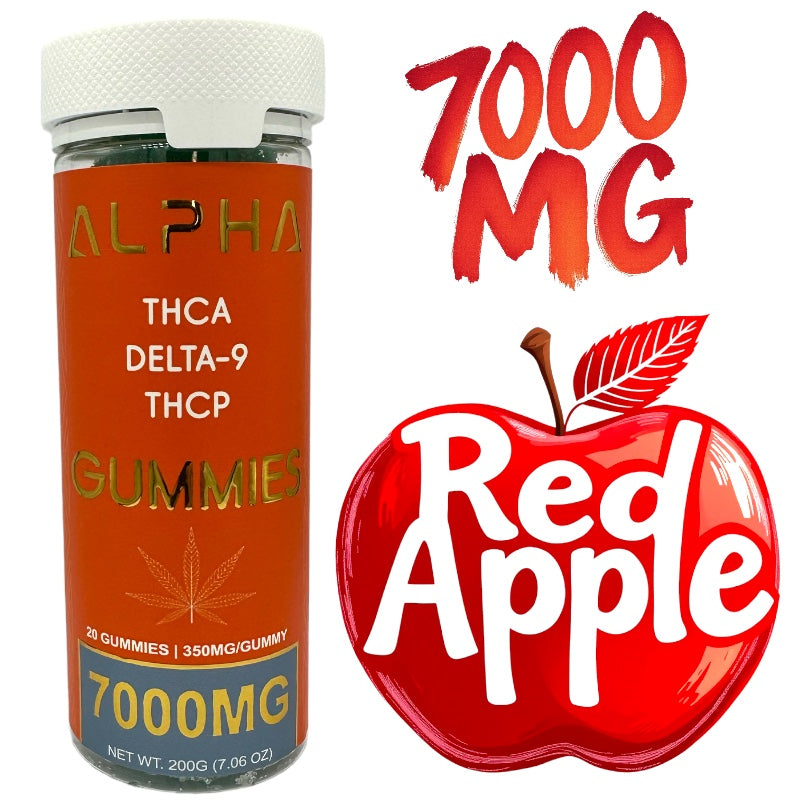 Alpha 7000mg THC RED APPLE THCA THCP D9 Gummies 20 Count