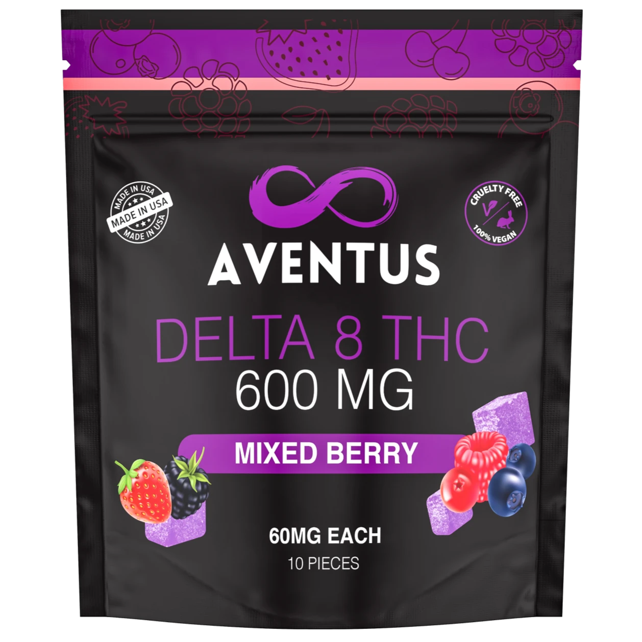 Delta 8 infused gummies deliver a delicious flavor with each bite. They taste alike normal gummies, with zero hemp taste. They usually take between 25-90 minutes to begin working. However, once the sensations set in, they often last up to six hours or more. Aventus 8 delta 8 infused gummies contain 60mg per gummy and come in six different flavors, mixed berry, sour worms, raspberry, blueberry lemonade, watermelon.