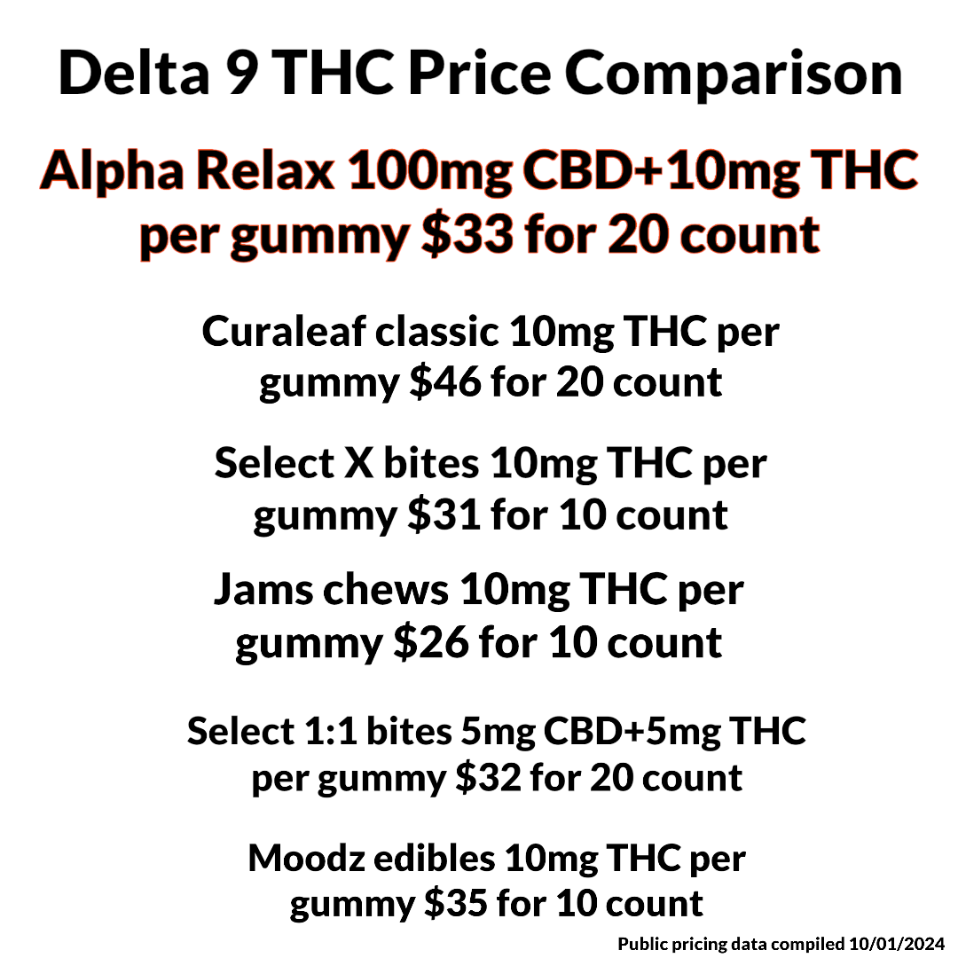Each jar of Alpha gummies carries 200mg of full spectrum hemp derived Delta 9 THC + 2000mg of CBD. Here’s how that breaks down per gummy: